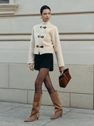 Soğuk havalarda şıklığınızdan ödün vermeyin! Yumuşak dokusu ve zarif detaylarıyla Elegance Ekru Kısa Kaban, her kombine sofistike bir dokunuş katıyor. Modern tasarımı ve kaliteli kumaşıyla tarzınızı öne çıkarın. 🌟
