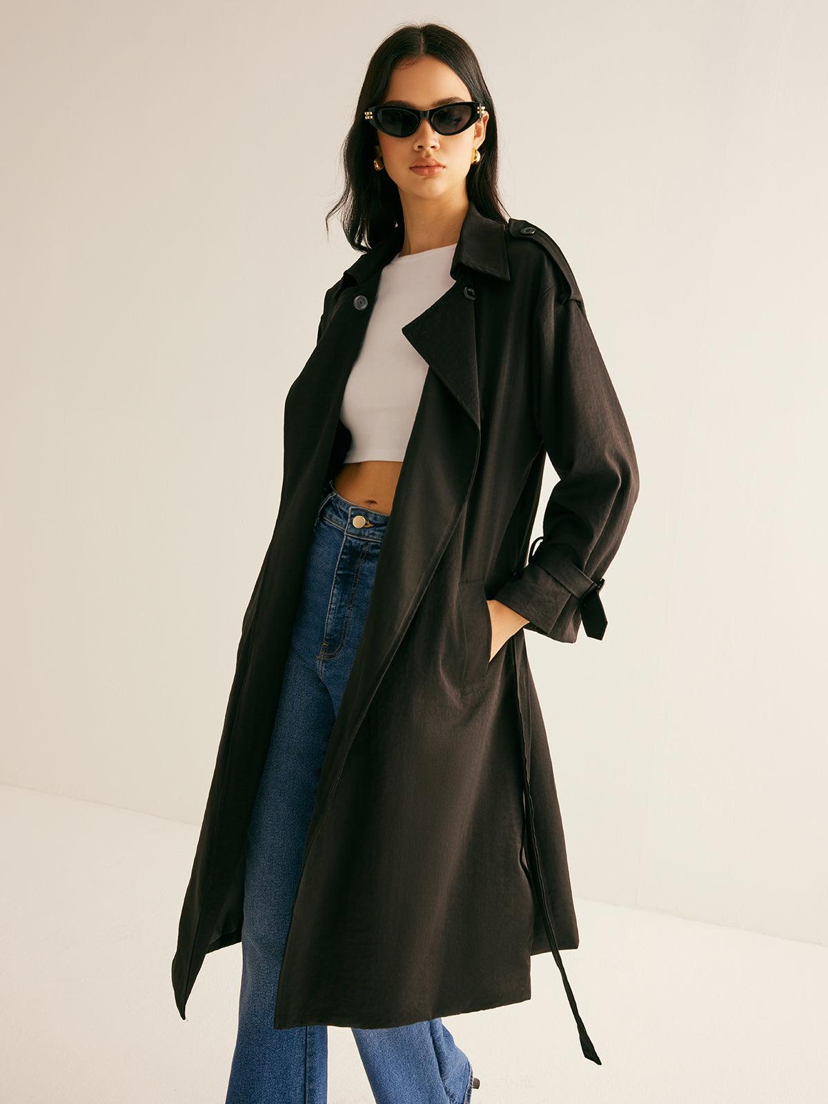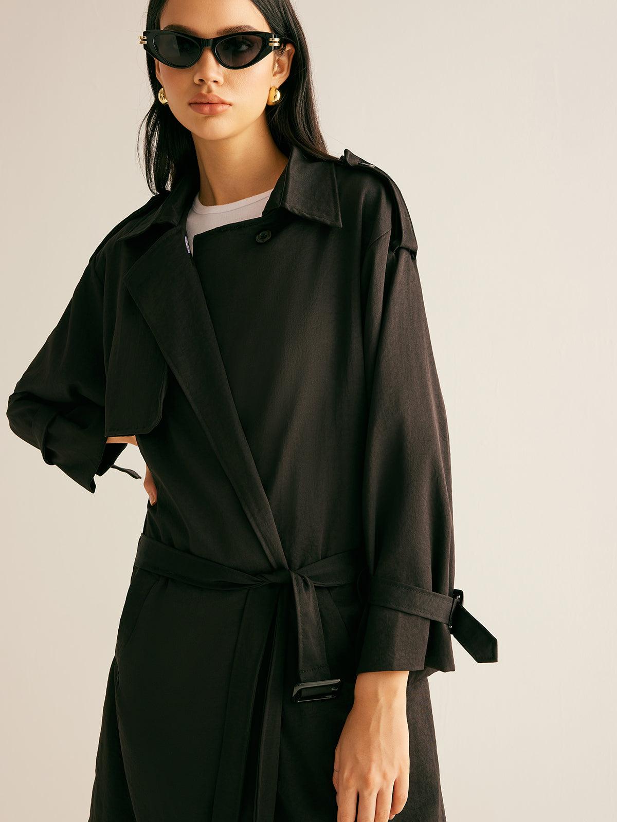 Jet Black Uzun Trençkot, minimal tasarımı ve modern kesimiyle zarafeti ve fonksiyonelliği bir araya getiriyor. Her mevsimde kullanıma uygun yapısıyla günlük şıklığınızı tamamlayan bu parça, her ortamda dikkat çekici bir görünüm sunar. Geniş yakası, rahat kesimi ve bağlama kemeriyle hem konfor hem de şıklık sağlar.