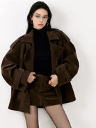 Velvet Mocha Oversize Coat’u siyah mini etek ve boğazlı bir kazak ile kombinleyerek sofistike bir görünüm oluşturabilirsiniz. Daha günlük bir tarz için düz kesim kot pantolon ve sneaker’larla tamamlayabilirsiniz. Altın aksesuarlar ve sade bir çanta ile şıklığınızı ön plana çıkarabilirsiniz.