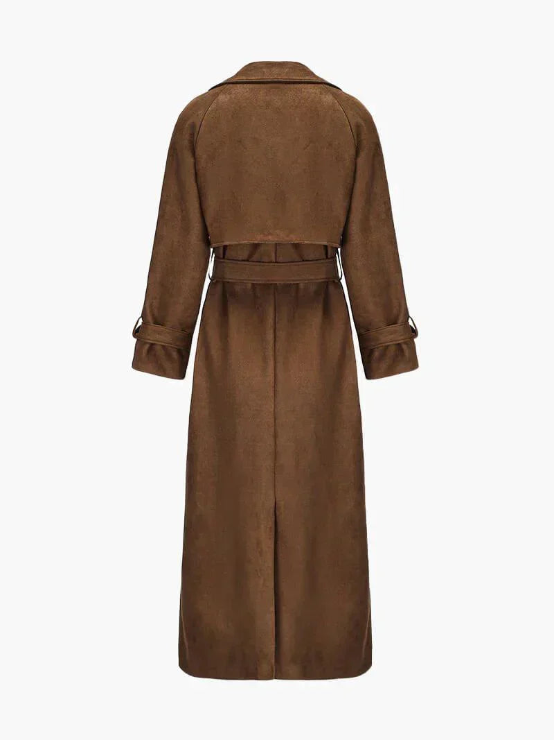 Bu zamansız uzun trençkot, kruvaze tasarımı ve özel kesimi ile sofistike ve çok yönlülüğü bir araya getiriyor. Silüeti vurgulamak için kemerli bir bele sahip olan bu ceket, mevsimler arası geçişler için mükemmeldir. Süet benzeri lüks kaplaması şıklık katar ve hem resmi hem de gündelik görünümler için idealdir. Çabasız bir stil için gardırobun vazgeçilmezi.