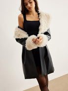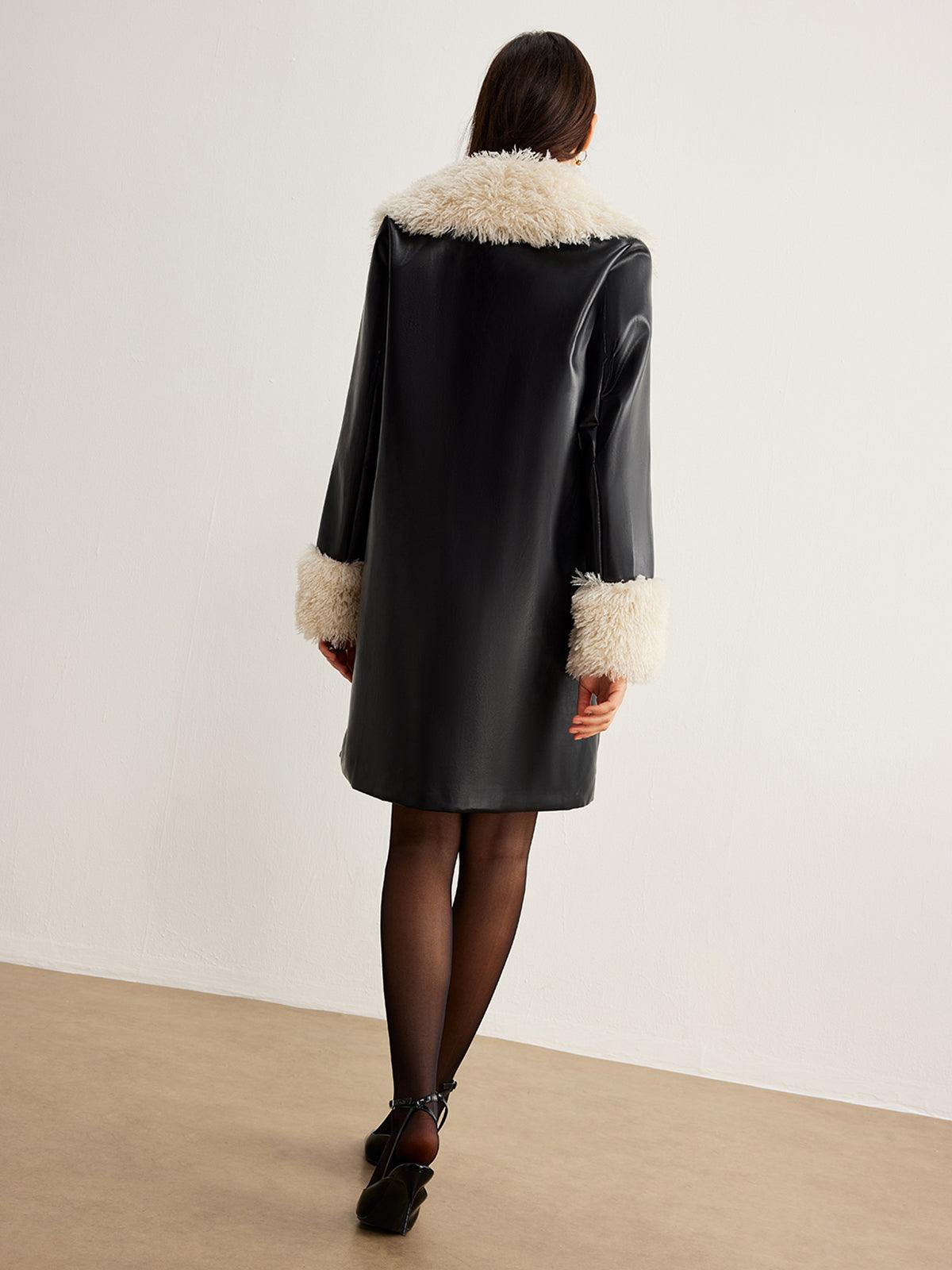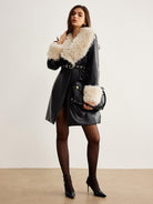 Siyah Deri Görünümlü Kürk Detaylı Ceket