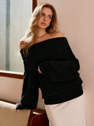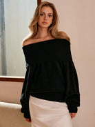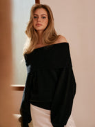 Yüksek Streç Omuzu Açık Kazak