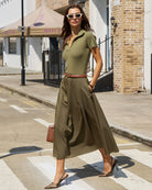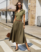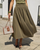 Ordu Yeşili Pileli A Kesim Midi Etek