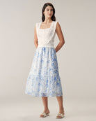 Belltoile™ Mavi Çiçekli Kloş Midi Etek