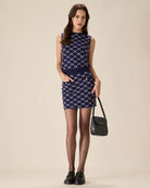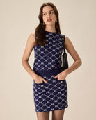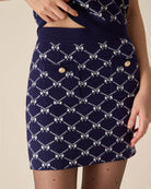 Belltoile™ Mavi Geometrik Triko Mini Etek
