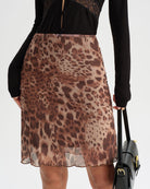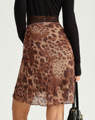 Kahverengi Leopar Desenli Lastikli Bel Mini Etek