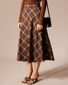 Belltoile™ Kahverengi Beli Lastikli Ekose A Kesim Midi Etek