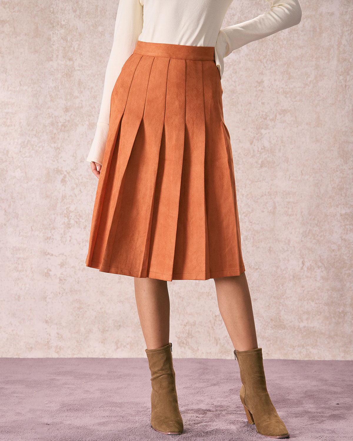 Belltoile™ Turuncu Yüksek Bel Süet Midi Etek