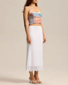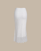 Beyaz Doğal Belli Örgü Lale Midi Etek
