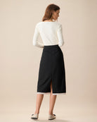 Belltoile™ Siyah Kontrast Yırtmaçlı Midi Etek