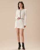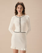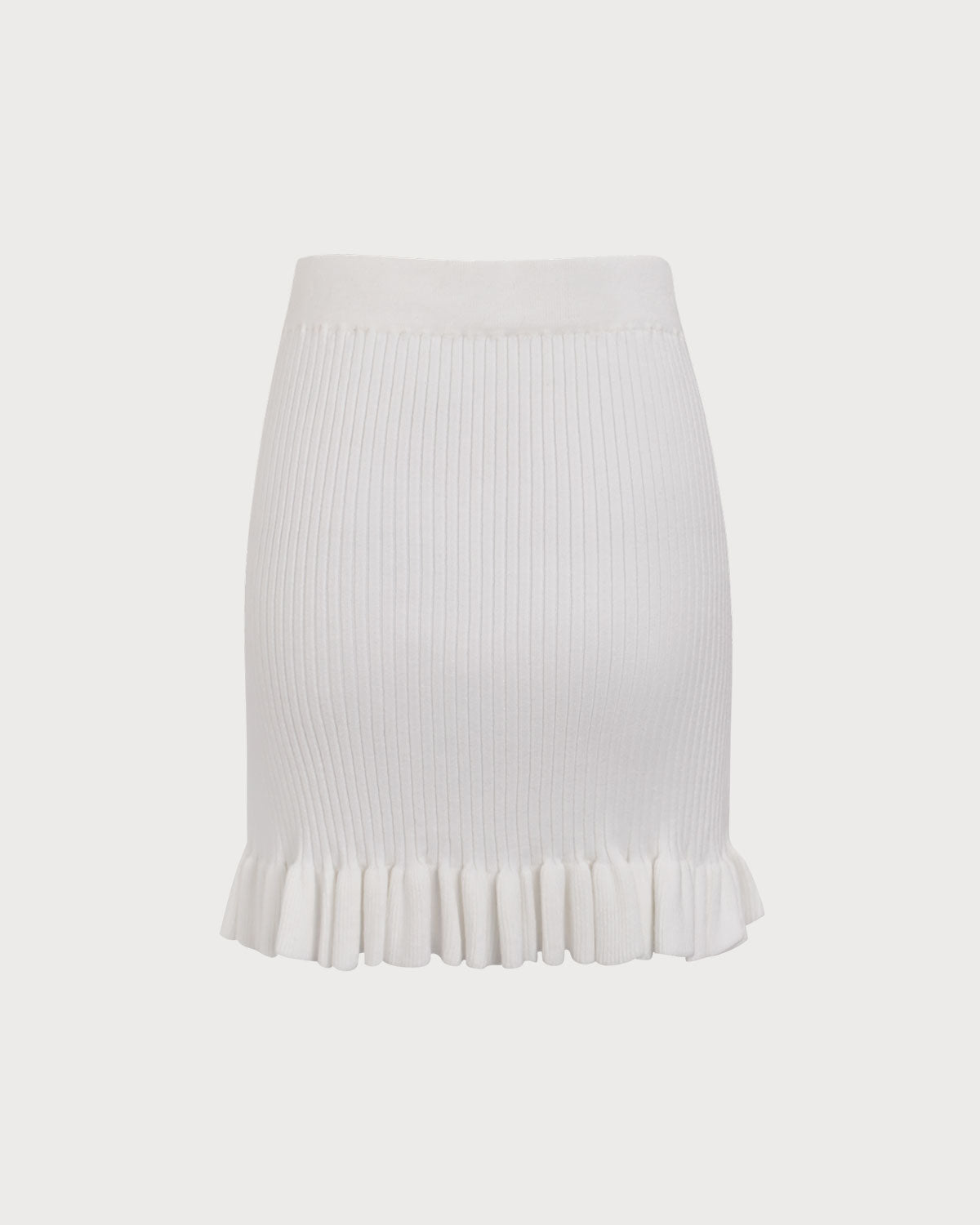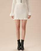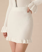 Belltoile™ Kadın Beyaz Fırfırlı Düz Örgü Mini Etek
