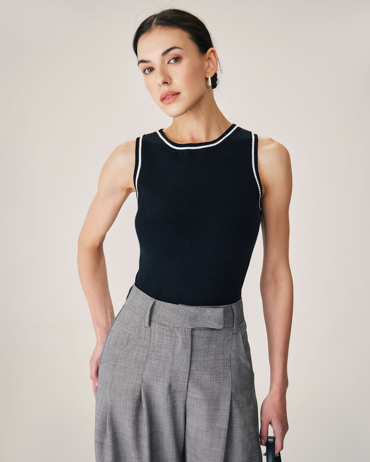 Belltoile™ Siyah Kontrastlı Nervürlü Örgü Atlet