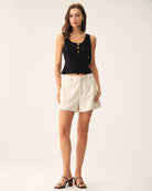Belltoile™ Siyah U Yaka Düğmeli Örgü Atlet