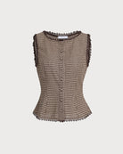 Belltoile Kahverengi Ekose Tek Sıra Düğmeli Yelek