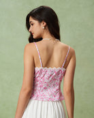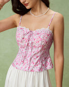 Pembe Çiçekli Kalp Yaka Atlet Üst