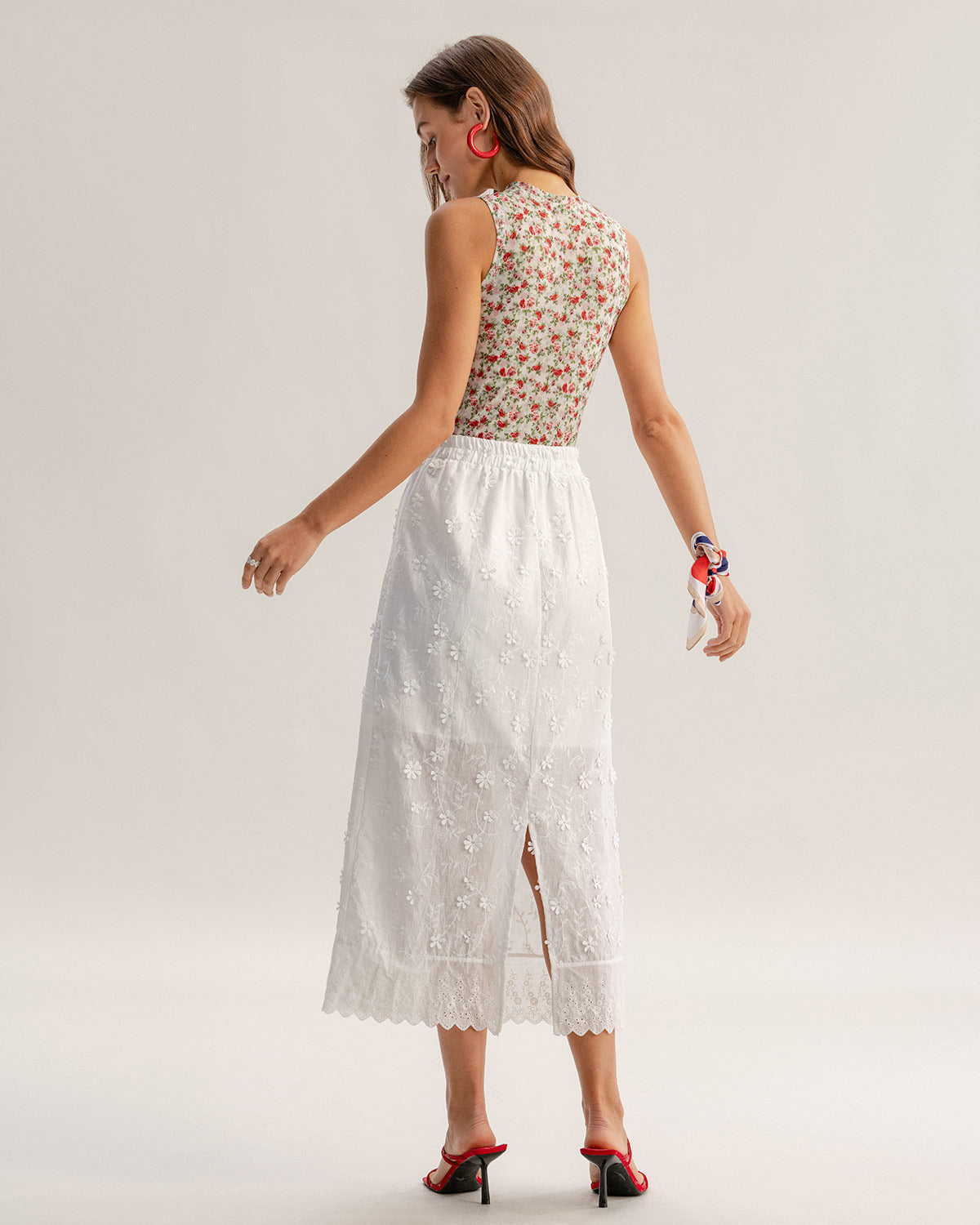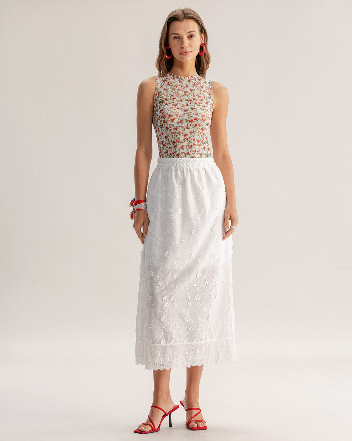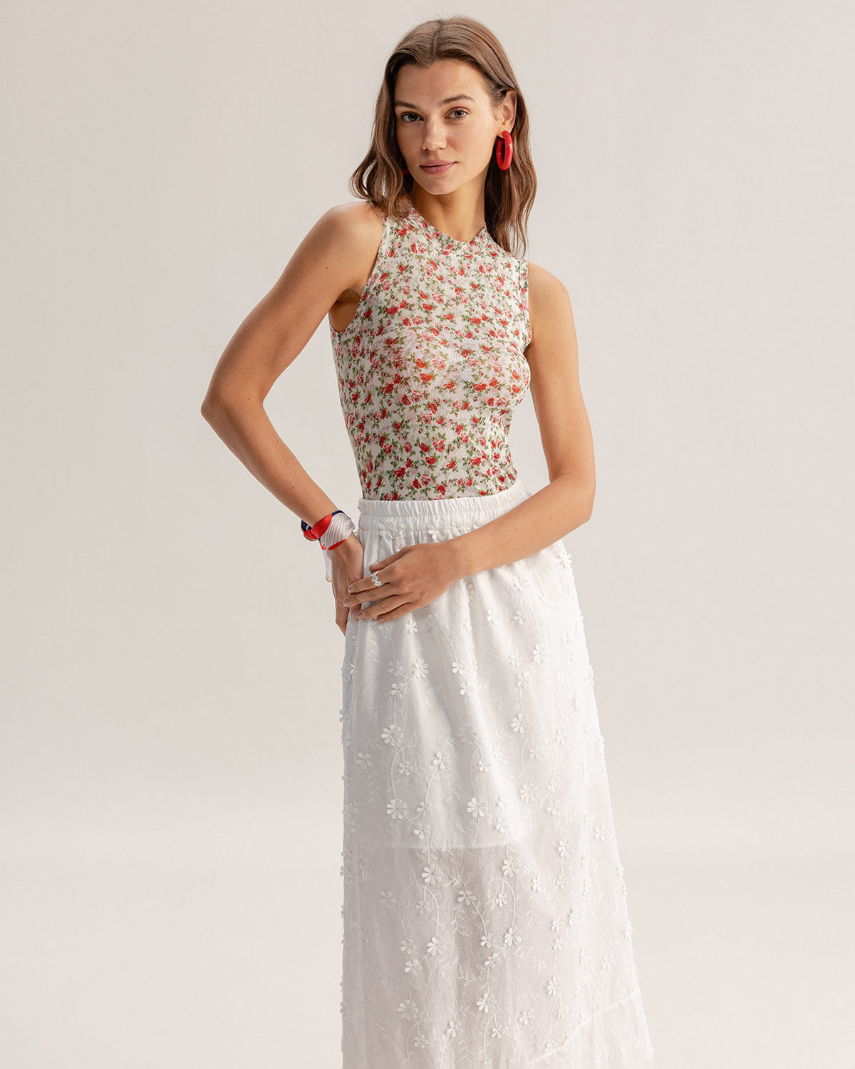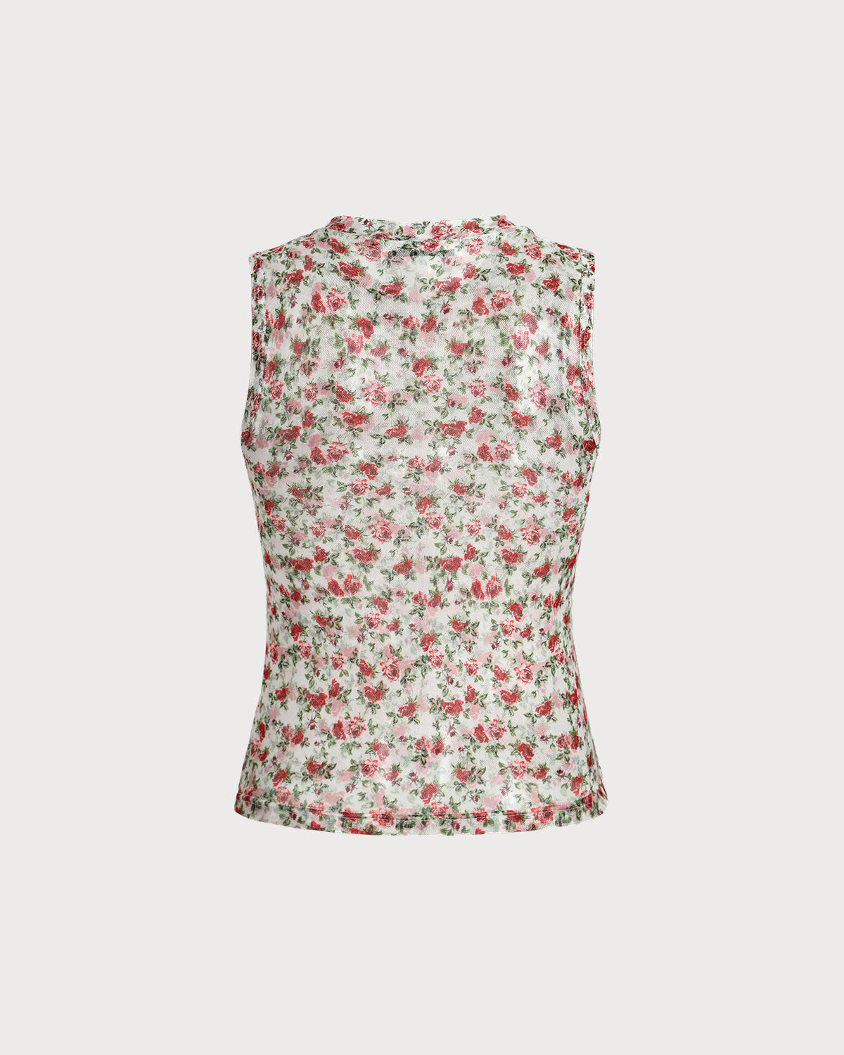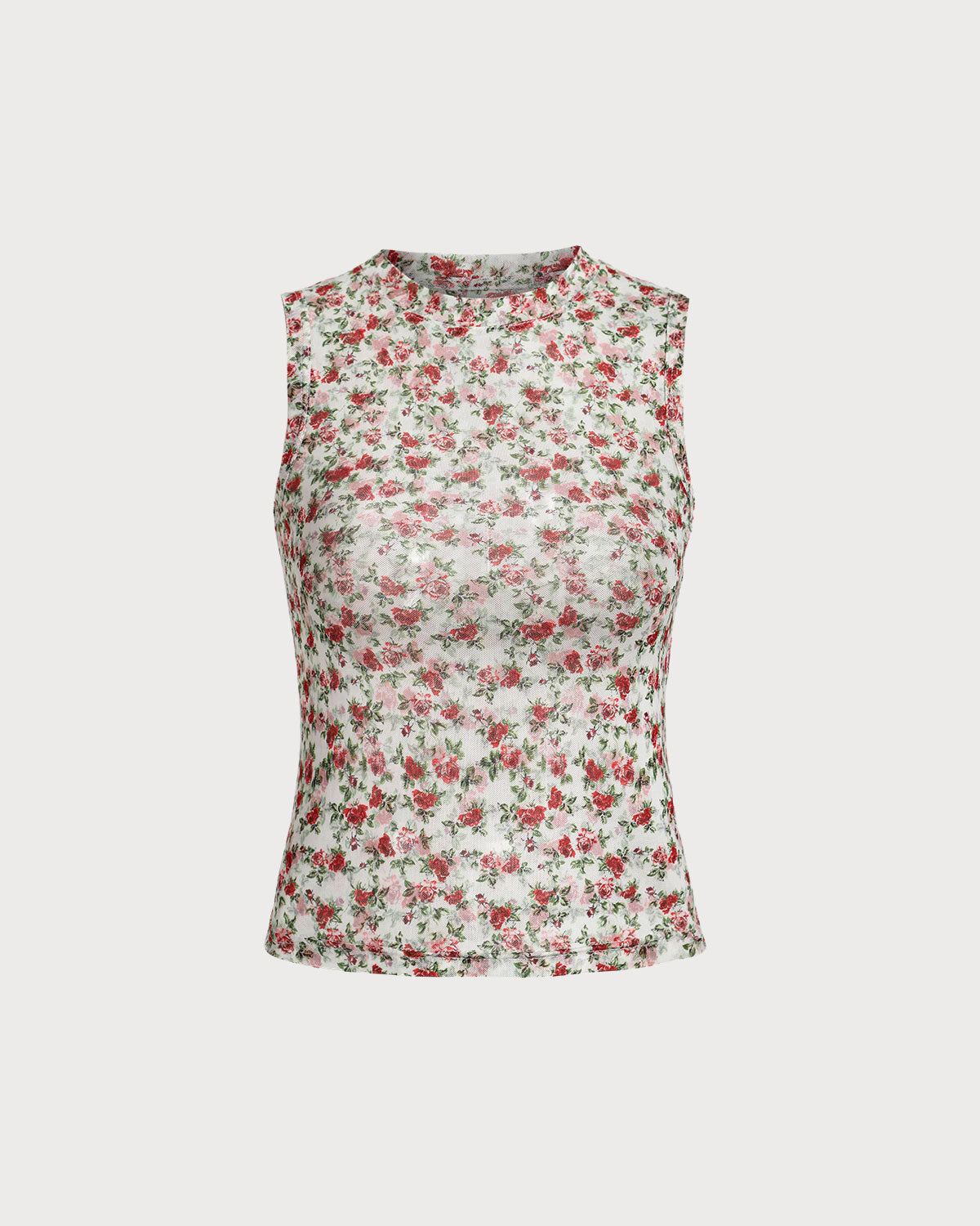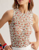 Belltoile™ Kırmızı Çiçekli Yuvarlak Yaka Kolsuz Bluz