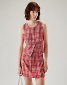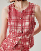 Belltoile™ Kırmızı Ekose Tek Sıra Düğmeli Yelek
