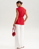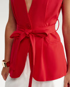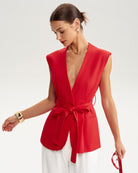 Kırmızı V Yaka Cepli Yelek