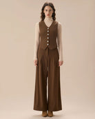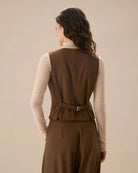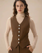 Belltoile™ Kahverengi V Yaka Düğmeli Kolsuz Yelek