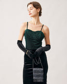 Belltoile™ Yeşil Kalp Yaka Kadife Crop Cami Üst