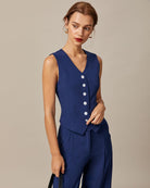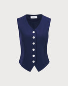 Belltoile™ Lacivert V Yaka Düğmeli Kolsuz Yelek