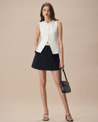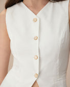 Belltoile™ Beyaz Tek Sıra Düğmeli Pamuklu Yelek