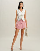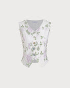 Beyaz Nakışlı V Yaka Düğmeli Yelek