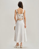Beyaz Çiçekli Büzgülü Kare Yaka Atlet Üst