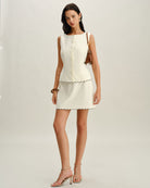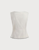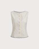 Beyaz Yuvarlak Yaka Düğmeli Yelek