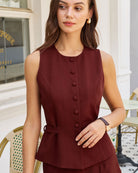 Şarap Kırmızısı Düğmeli Kemerli Yelek