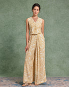 Sarı Çiçekli V Yaka Yelek