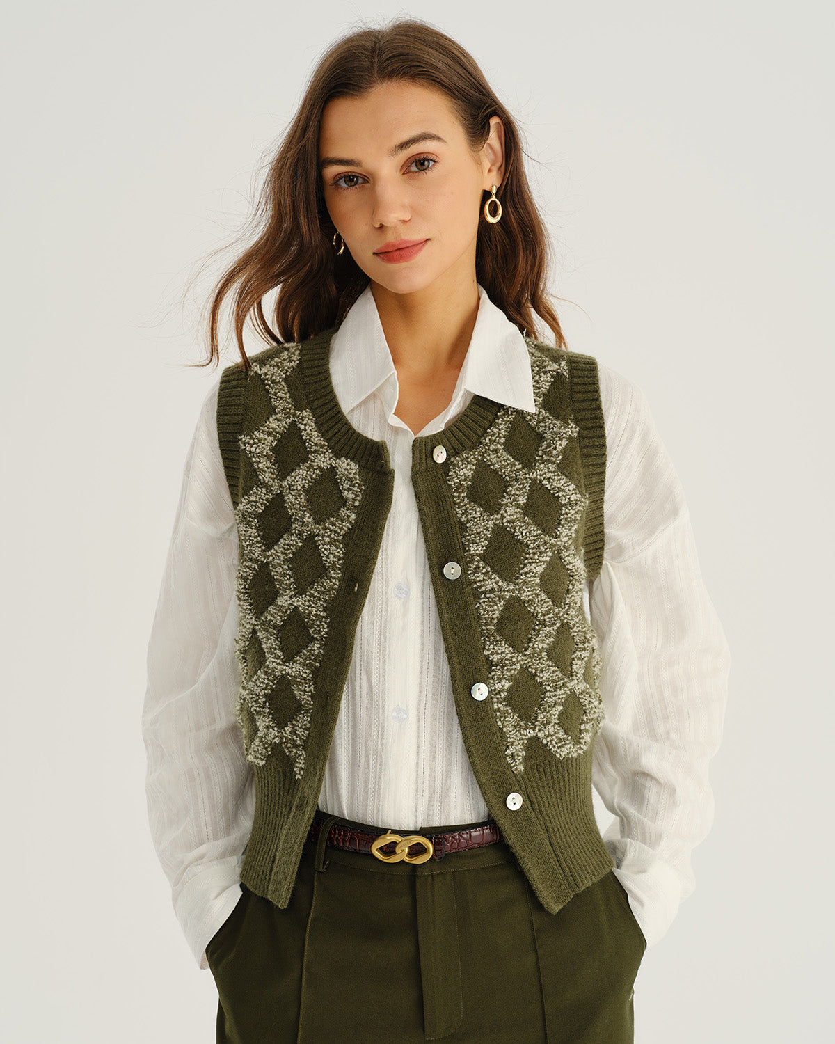 Kahverengi Yuvarlak Yaka Örgü Atlet