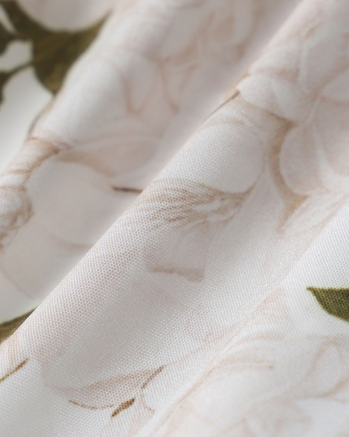 Beyaz Çiçekli Büzgülü Kare Yaka Atlet Üst