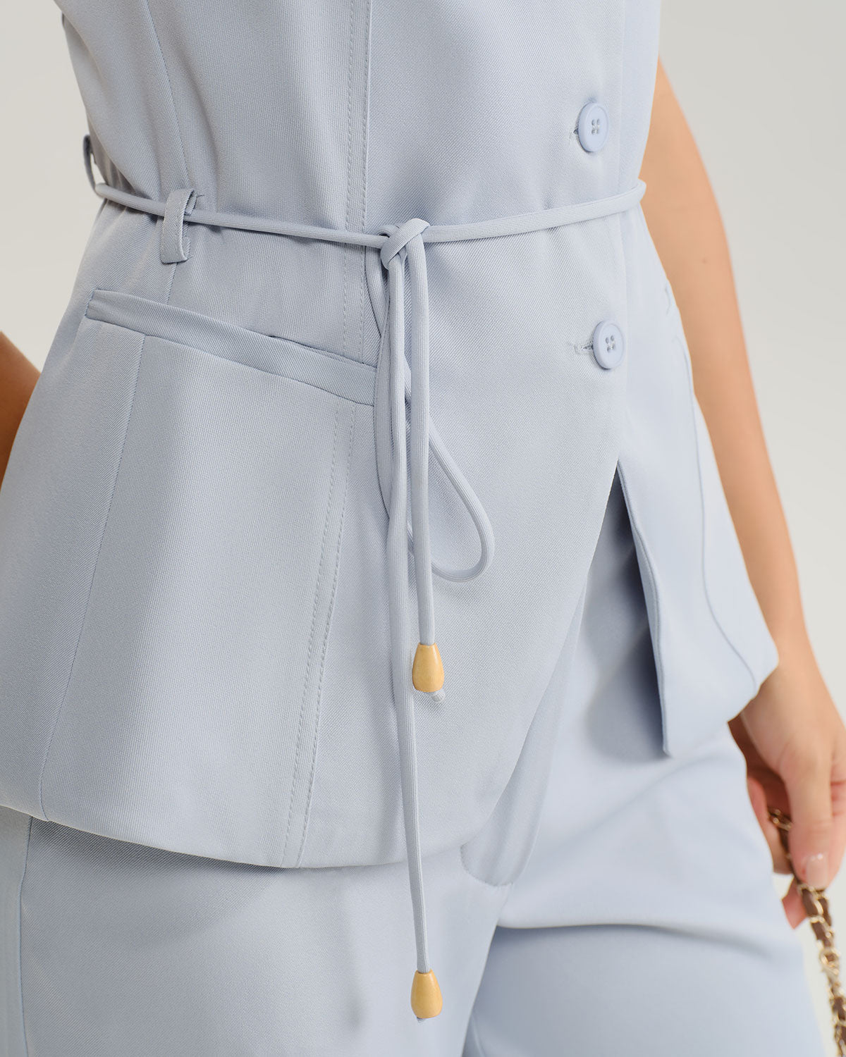 Beyaz Yuvarlak Yaka Düğmeli Yelek