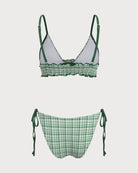 Belltoile™ Yeşil Kontrast Ekose Kırışık Bikini Takımı