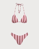 Belltoile™ Pembe Çizgili Fırfırlı Halter Bikini Takımı