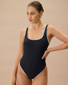 Belltoile™ Siyah Kontrast Nervürlü Tek Parça Mayo