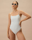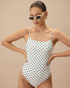Belltoile™ Beyaz Puantiyeli Sırtı Açık Tek Parça Mayo