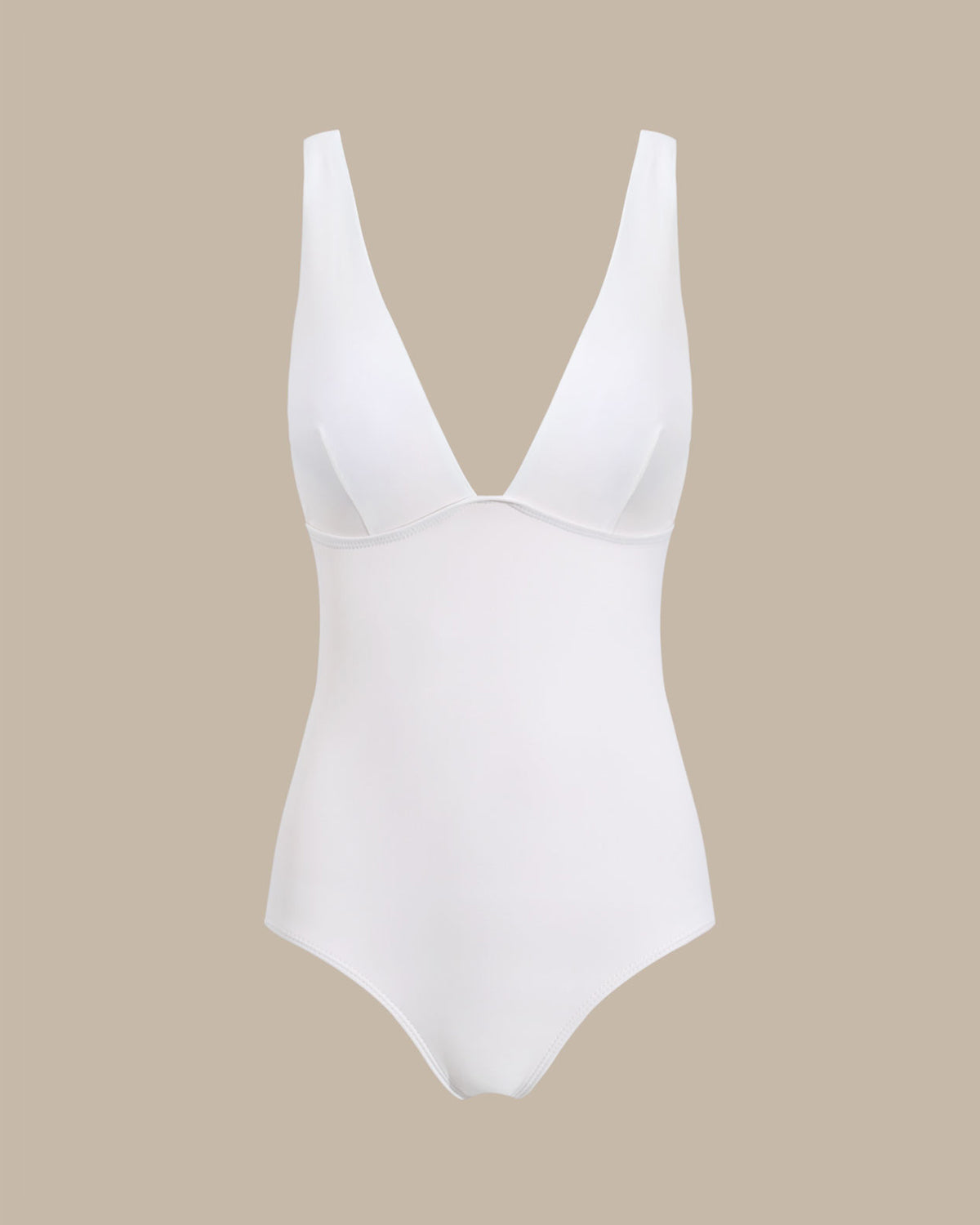 Belltoile™ Beyaz V Yaka Sırtı Açık Tek Parça Mayo