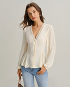 Kayısı V Yaka Dantel Fener Kollu Bluz
