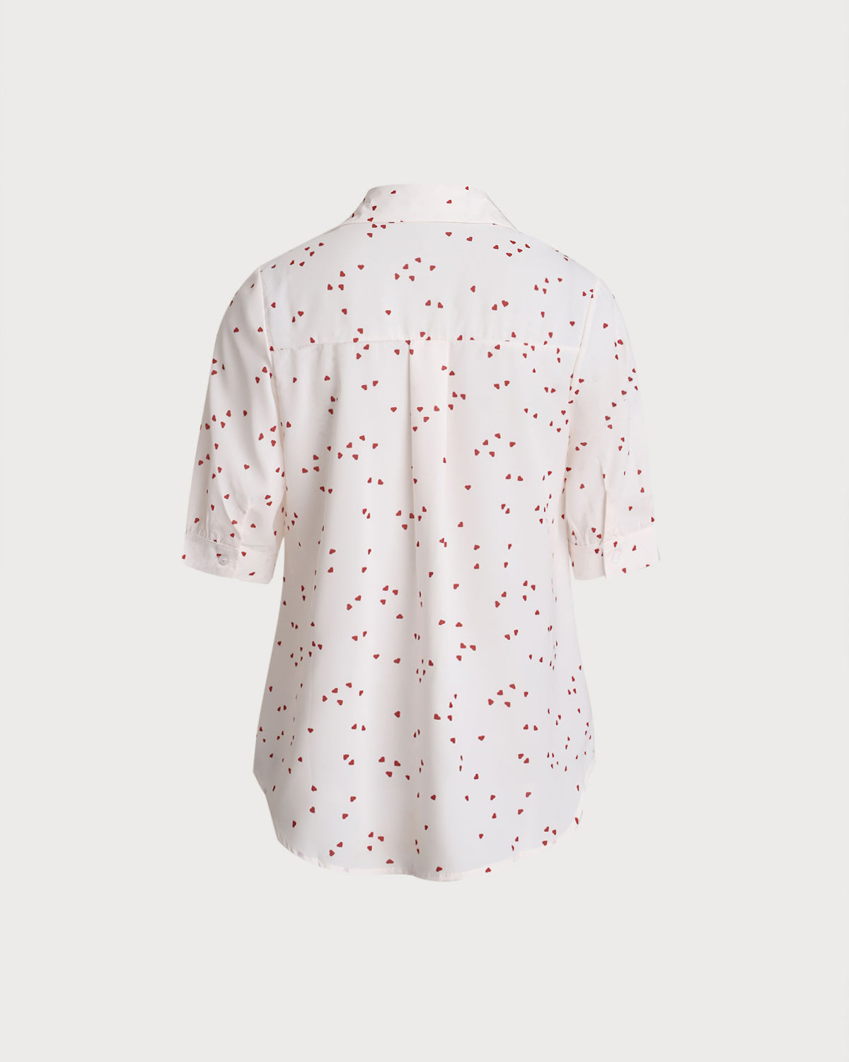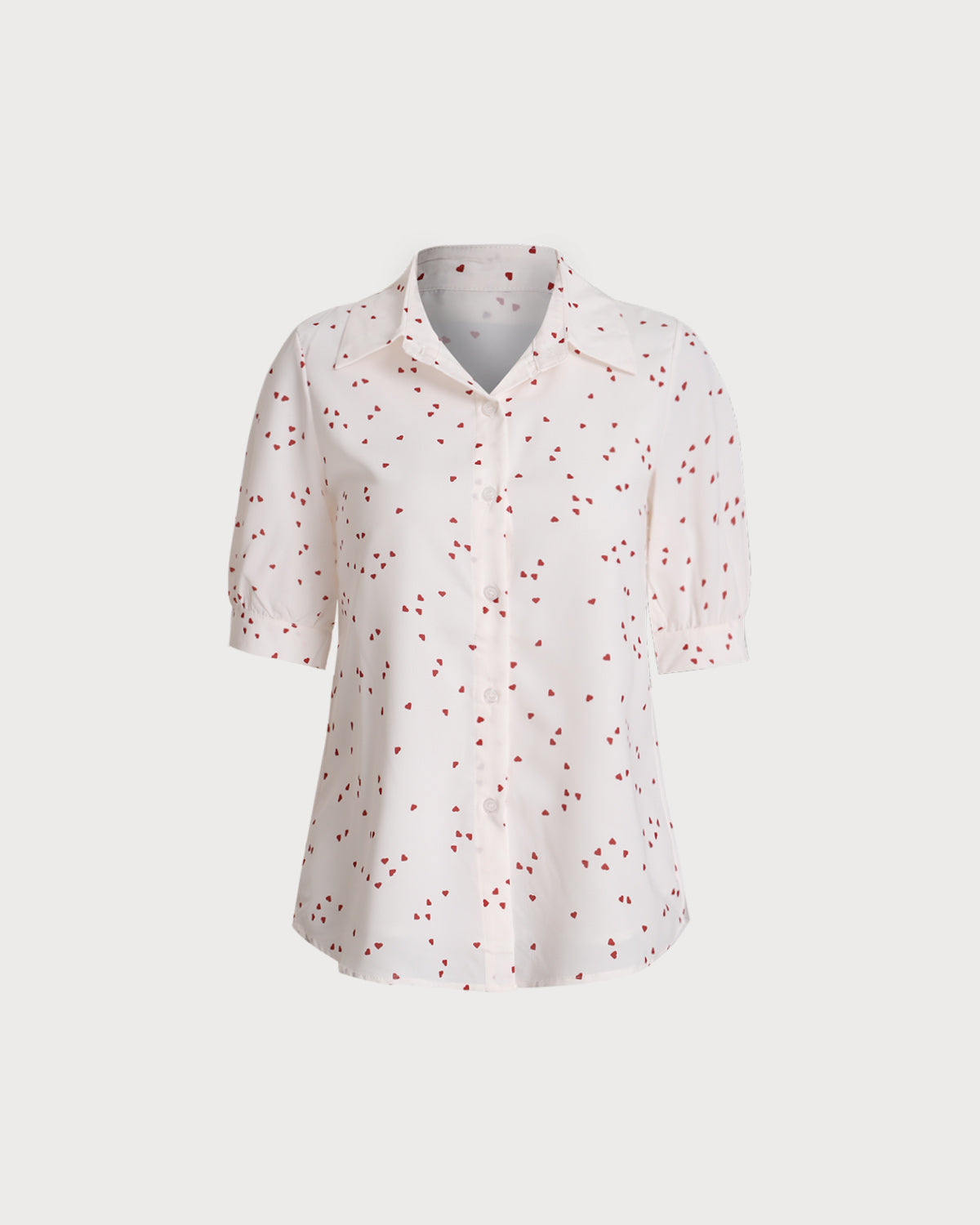 Belltoile™ Bej Kalp Desenli Yarım Kol Bluz