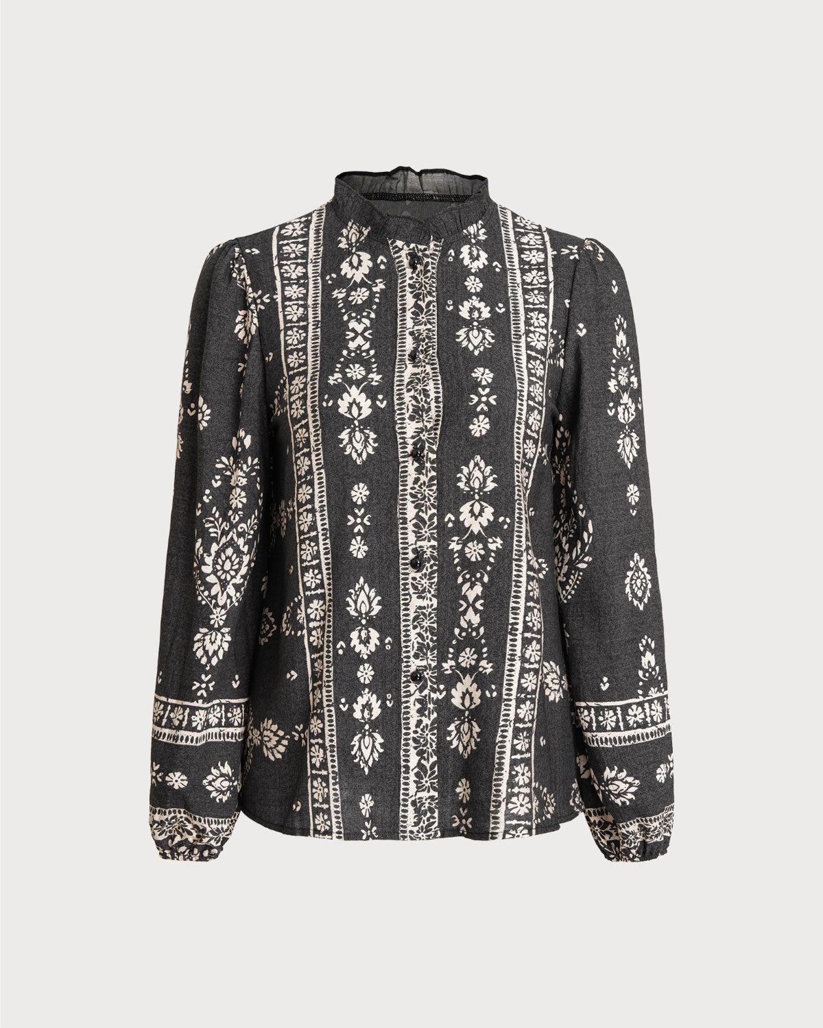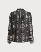 Siyah Çiçekli Fener Kollu Gömlek