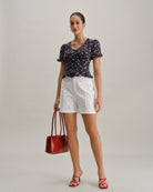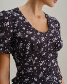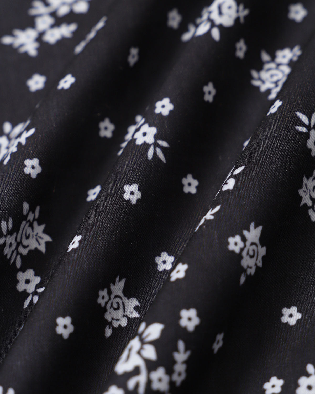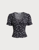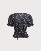 Siyah Çiçekli Yuvarlak Yaka Bluz