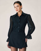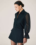 Belltoile™ Siyah Transparan Şair Kol Bluz