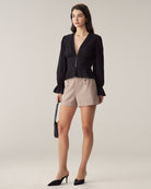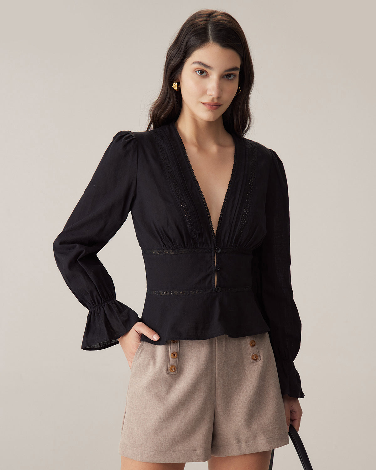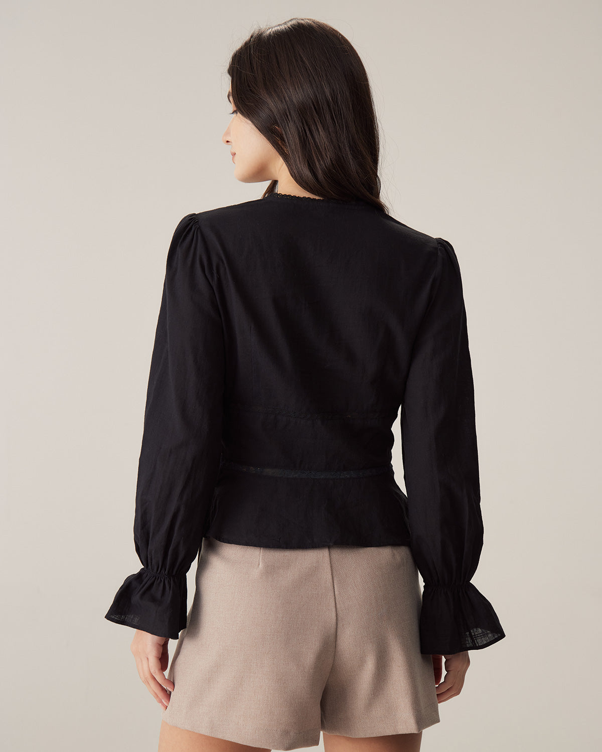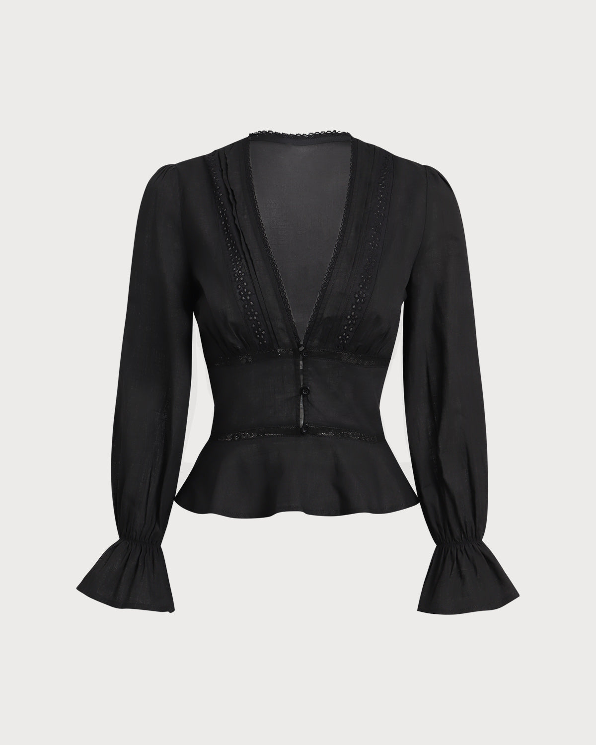 Belltoile™ Siyah V Yaka Fırfırlı Bluz