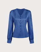 Mavi Saten V Yaka Bol Gömlek