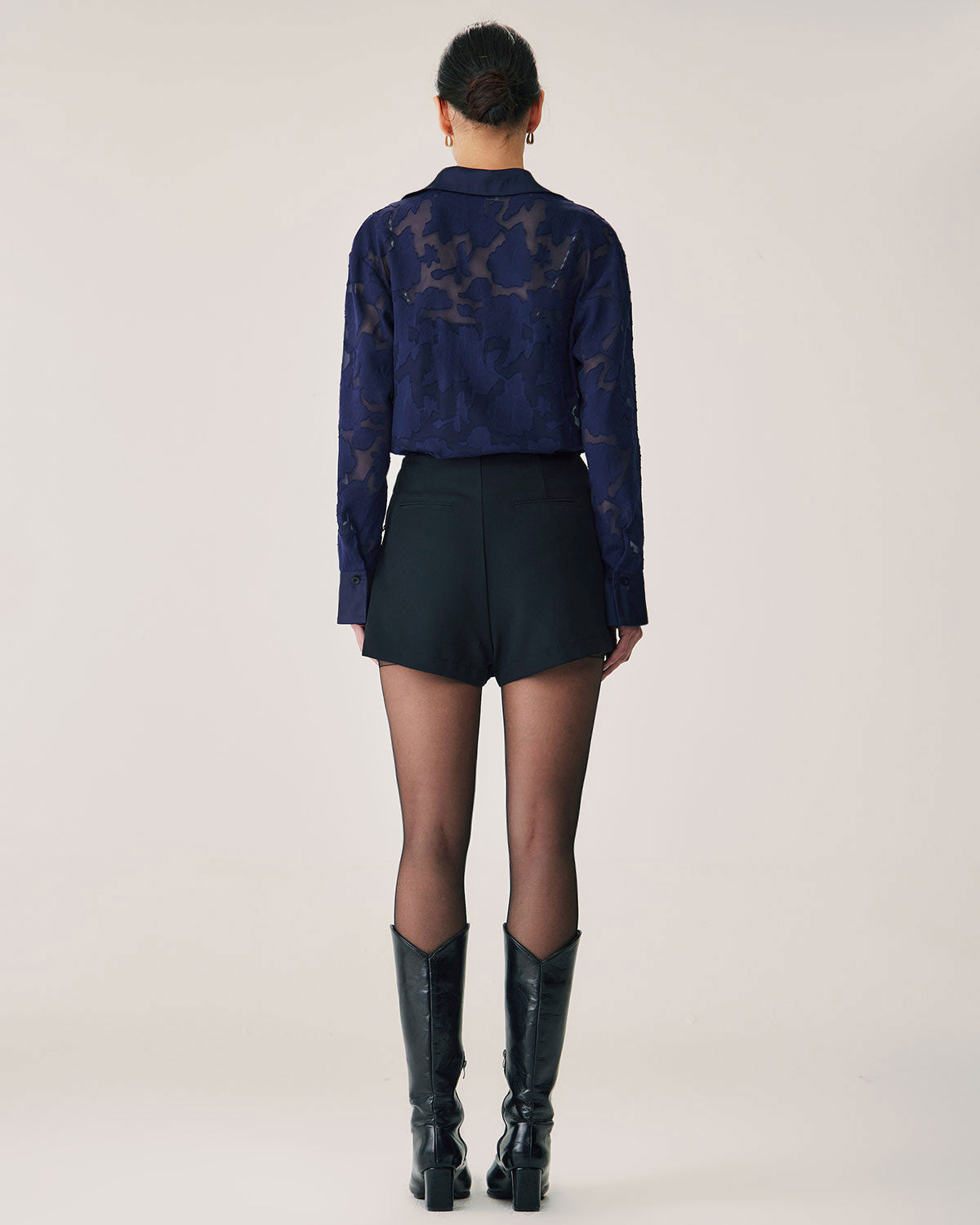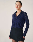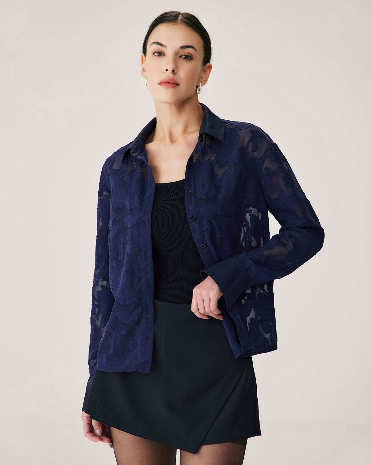 Belltoile™ Lacivert Jakarlı Uzun Kollu Gömlek