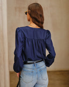 Lacivert Yuvarlak Yakalı Kabarık Kollu Bluz