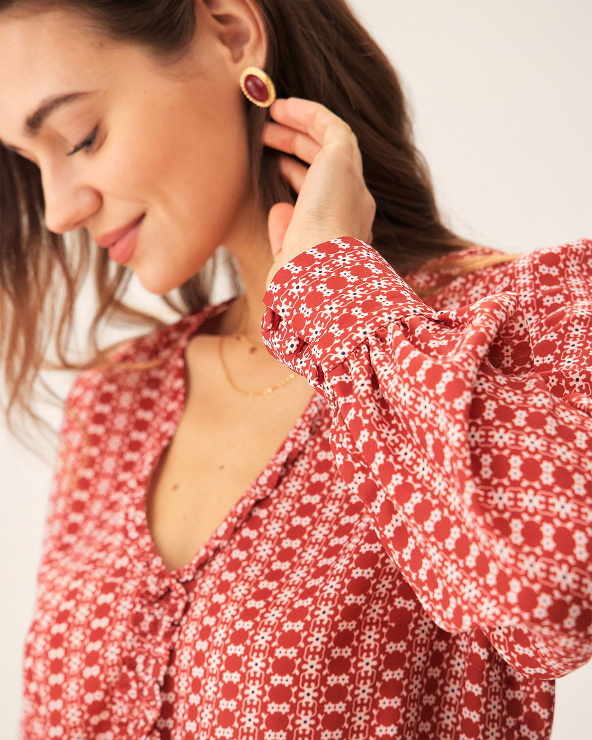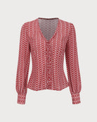 Belltoile Kırmızı Çiçekli V Yaka Bluz