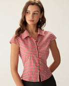 Belltoile Kırmızı Ekose Kap Kol Düğmeli Bluz